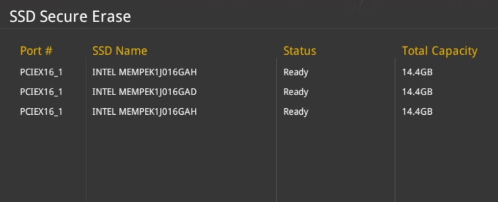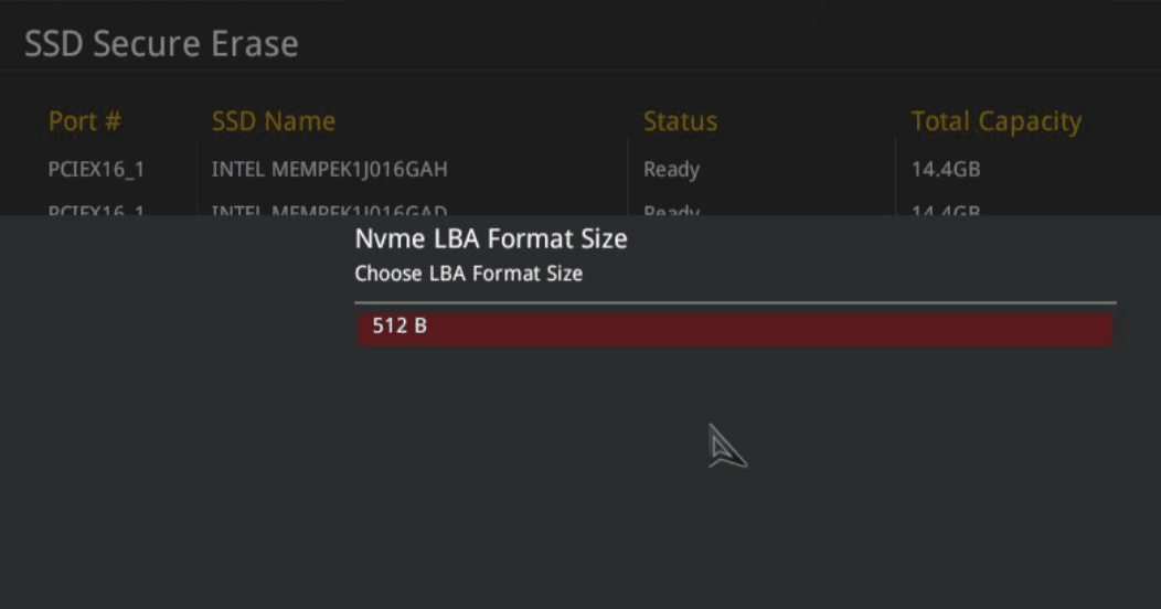 Die meisten ASUS-Motherboards unterstützen derzeit die Funktion ASUS Secure Erase im BIOS, die zum schnellen Bereinigen von SSDs verwendet werden kann und einige Probleme mit SSDs lösen kann, die unsachgemäß verwendet, weiterverkauft oder verschenkt werden. ASUS Secure Erase reinigt Ihre SSD vollständig und sicher und stellt sie auf das werkseitige Leistungsniveau zurück.