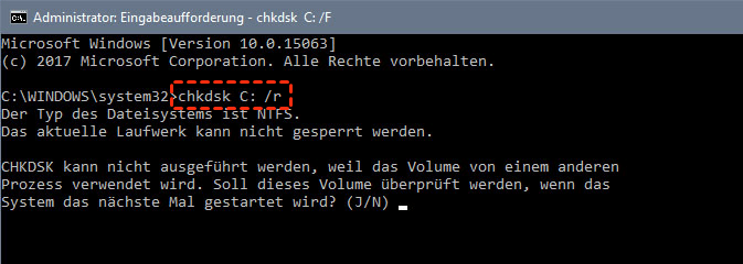 - Geben Sie chkdsk c: /r (Wenn der Laufwerksbuchstabe Ihrer Systempartition abweicht, geben Sie den richtigen ein.) in die Eingabeaufforderung ein und drücken Sie die Eingabetaste. Das bedeutet, dass Windows auf Ihrem C:-Laufwerk installiert ist.