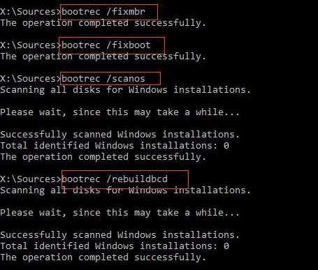 Defekte Startdateien verhindern, dass bootrec /fixboot korrekt ausgeführt wird.