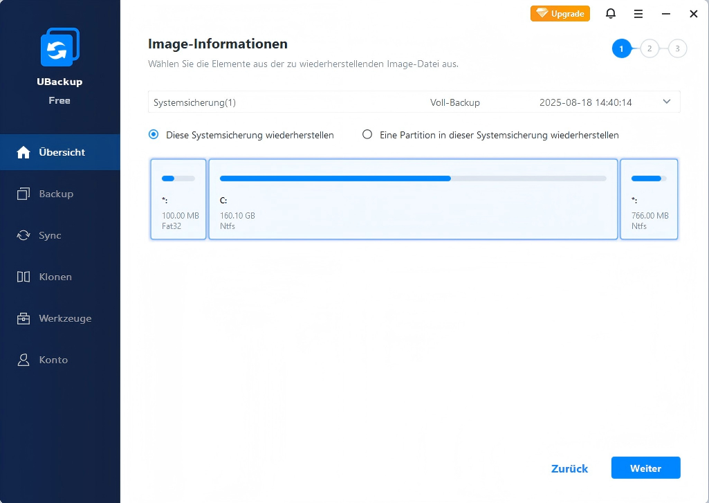 - Ein System-Backup-Image wird benötigt. Sie müssen im Voraus ein vollständiges Backup Ihres PCs erstellen.