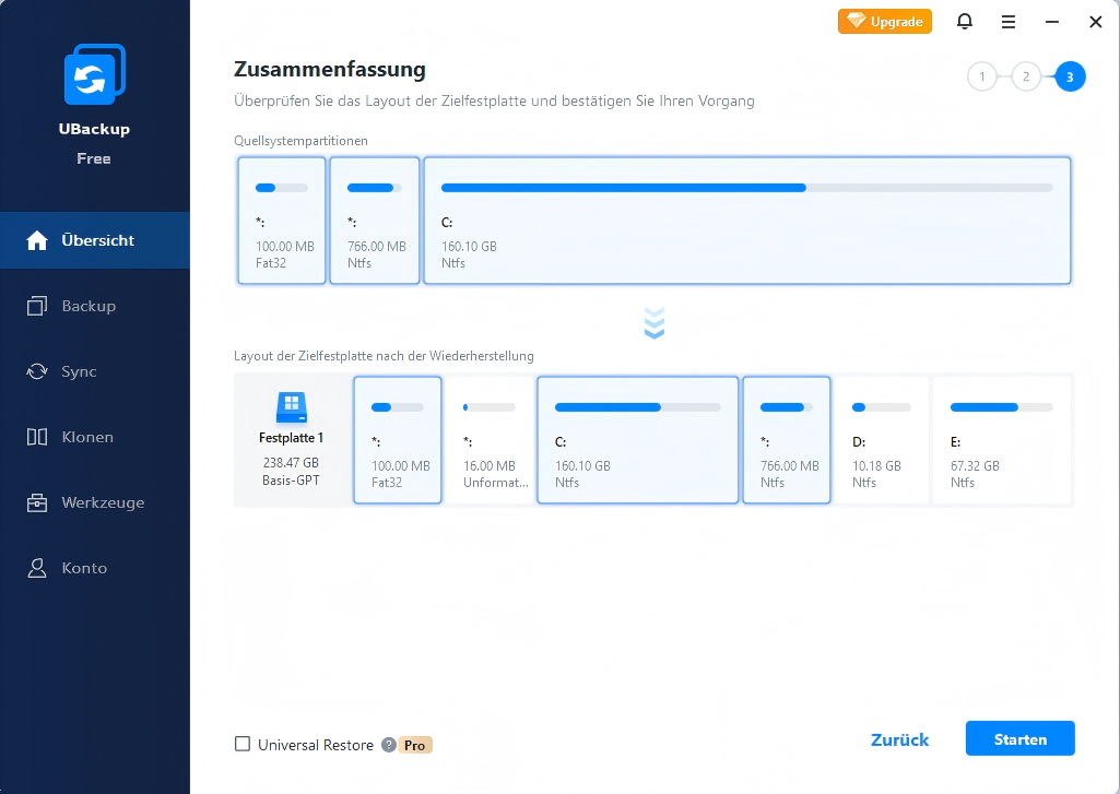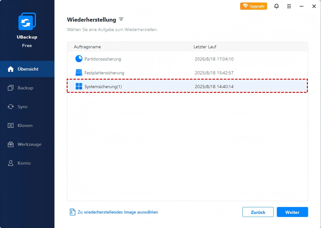 Leider können nicht alle Computer mit dieser Reparaturmethode in den normalen Zustand zurückversetzt werden. Daher benötigen Sie das beste Backup- und Wiederherstellungstool – UBackup, um Ihnen bei der Wiederherstellung im Katastrophenfall zu helfen. Mit seiner Hilfe können Sie Ihren Computer im Falle eines fehlerhaften Hochfahrens mithilfe einer Systemsicherung und eines bootfähigen Mediums in den normalen Zustand zurückversetzen.
