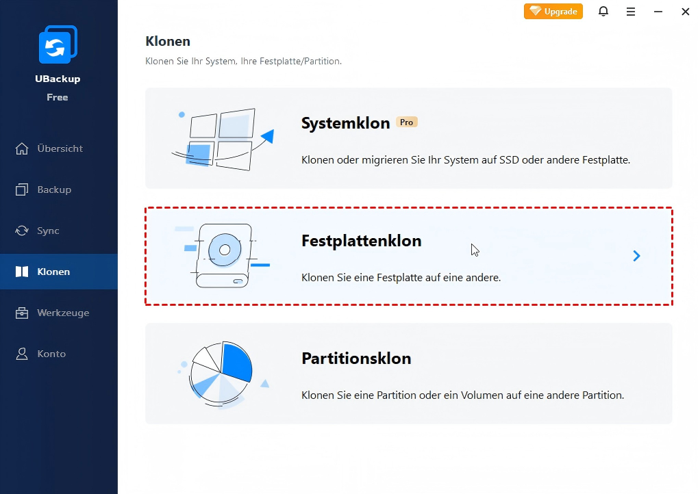 Wenn Sie eine einfachere Methode zum Erstellen eines Abbilds Ihrer externen HDD/SSD suchen, probieren Sie die Funktion Festplattenklon aus. Sie bietet einen einfacheren Ansatz zum Erstellen einer Spiegelung Ihres externen Speichergeräts.
