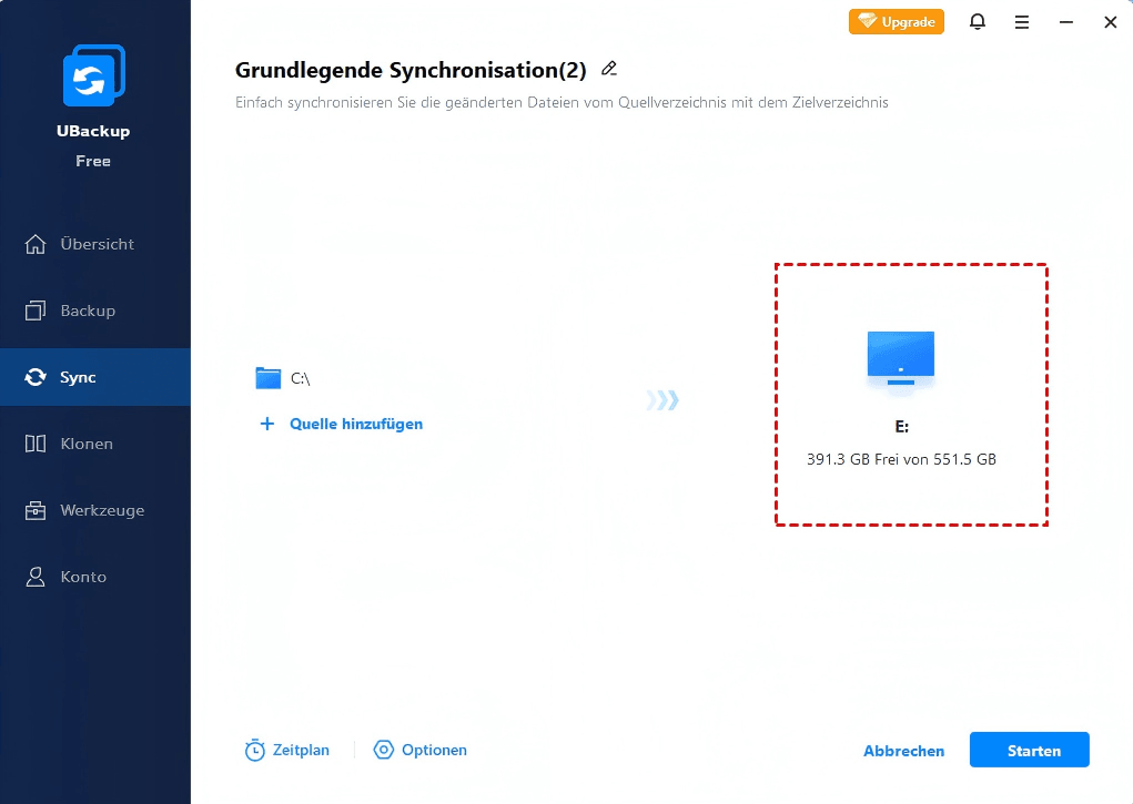 Im Folgenden erfahren Sie, wie Sie mit der Funktion „Synchronisation“ in UBackup Free Daten vom PC auf SD-Karte verschieben:
