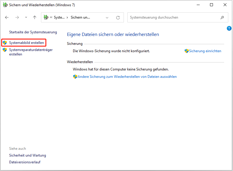 Methode 3. Windows Sichern und Wiederherstellen (integriert)