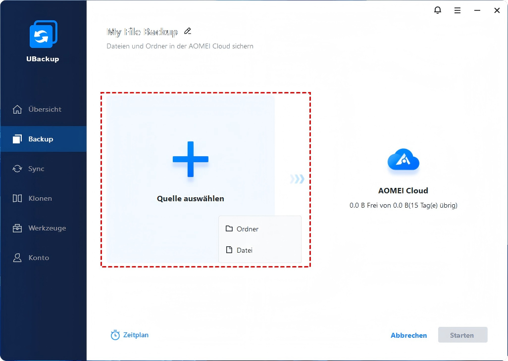 In der UBackup Home können Sie von erweiterten Funktionen profitieren, darunter:
