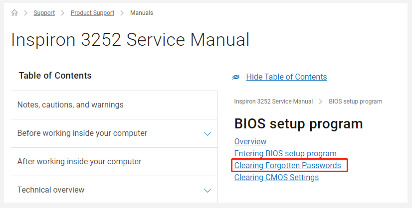 Weg 1. Dell BIOS-Passwort mithilfe von Service-Handbüchern zurücksetzen