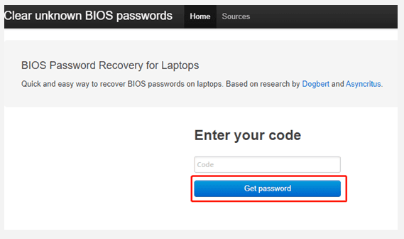Schritt 3. Gehen Sie dann auf einem separaten Computer hierhin, um auf die Website "Clear unknown BIOS passwords" zuzugreifen.