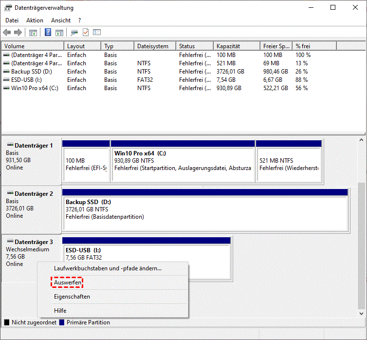 Lösung 3: Wechseldatenträger mit der Datenträgerverwaltung entfernen🔥