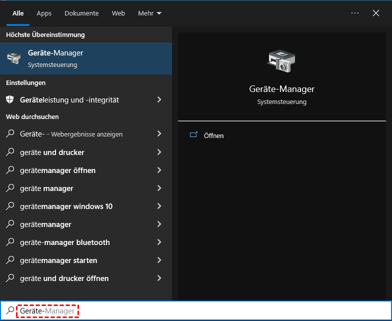 1. Suchen Sie nach dem Geräte-Manager im Suchfeld in der unteren linken Ecke und klicken Sie darauf, um ihn zu öffnen.