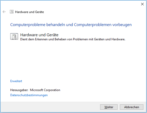 Lösung 8: Problembehandlung für den Wechseldatenträger über „Hardware und Geräte“ ausführen