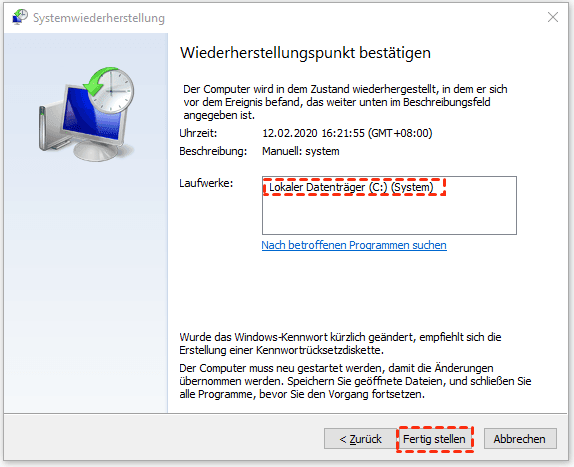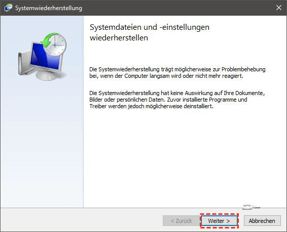 In den meisten Fällen kann die Systemwiederherstellung das Problem lösen, das Sie als Letztes versuchen können. Es kann den DISM-Fehler 87 beheben: Der Parameter ist falsch, aber Sie müssen bestimmte Software neu installieren.