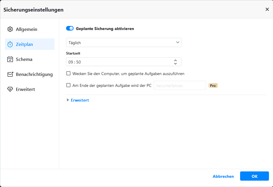- Sie können täglich, wöchentlich oder monatlich eine geplante Sicherung erstellen.