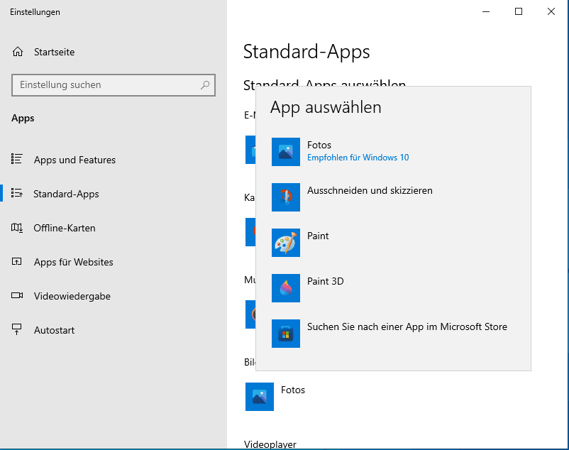 - Standardanwendung ändern
