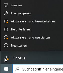 Klicken Sie auf das Windows-Symbol in der unteren linken Ecke des Desktops, dann auf Ein/Aus, wählen Sie die Option Neu starten im erweiterten Menü aus und warten Sie, bis der Computer neu gestartet ist.