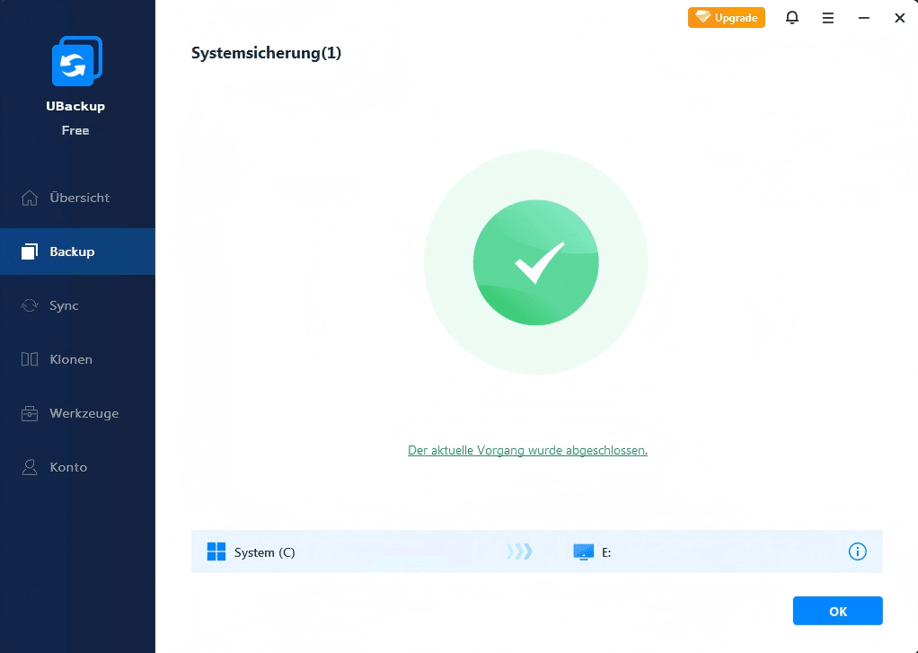 - Nach Abschluss der Sicherung klicken Sie auf die Schaltfläche OK.