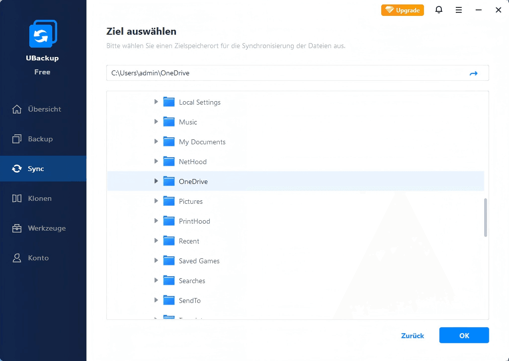 Schritt 1. Laden Sie UBackup herunter, installieren und starten Sie es. Klicken Sie dann auf Sync > Grundlegende Synchronisation.