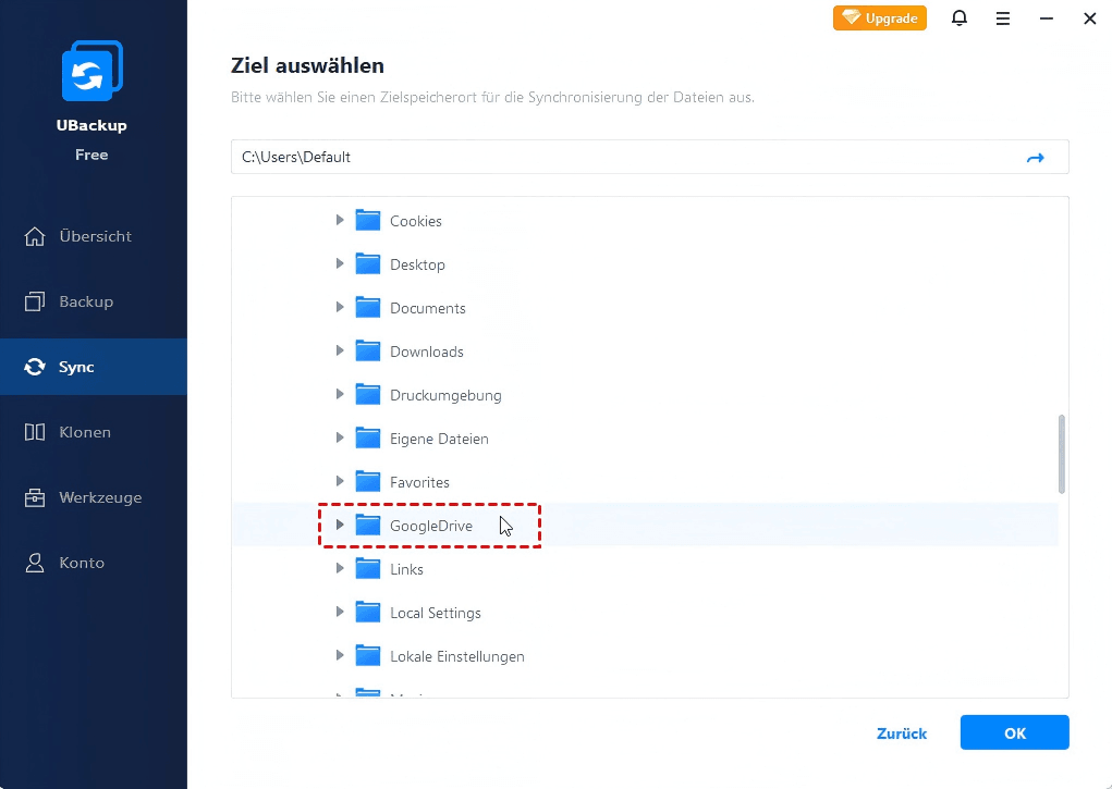 Die kostenlose Sync-Software von Drittanbietern UBackup Free kann Ihnen auch dabei helfen, in Google Drive nur bestimmte Ordner zu synchronisieren. Diese Software bietet folgende Vorteile: