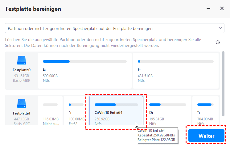 Schritt 4. Wählen Sie die Festplatte, die Sie löschen möchten, und klicken Sie auf Weiter, um fortzufahren.
