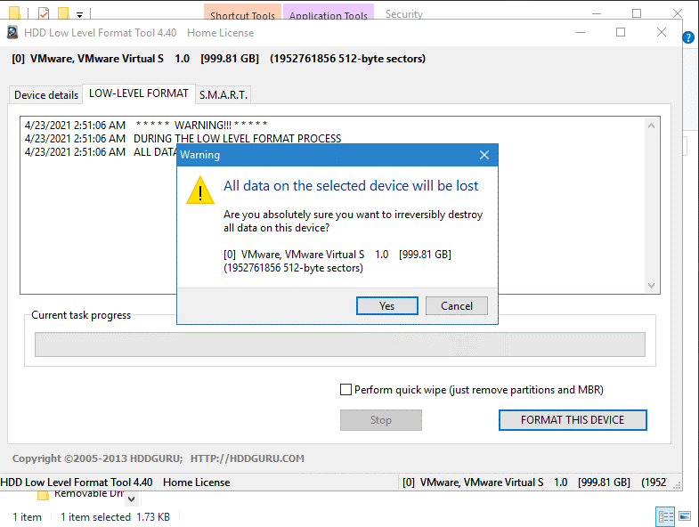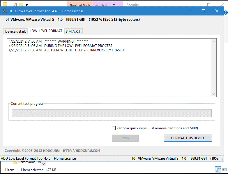 3. Klicken Sie auf der Registerkarte LOW-LEVEL FORMAT und dann auf FORMAT THIS DEVICE.