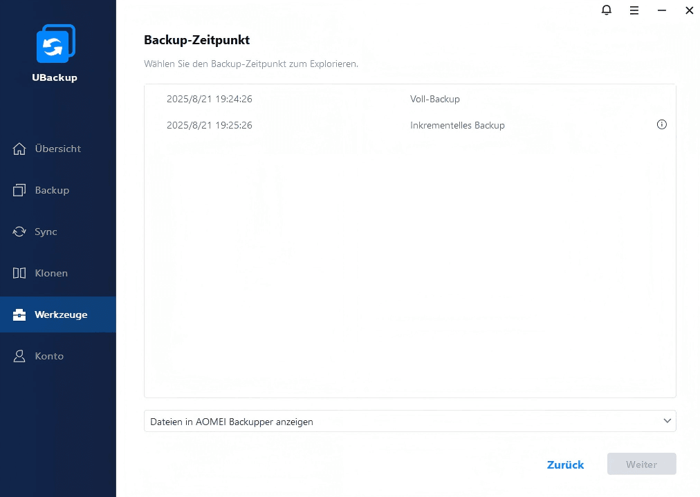 Schritt 3. Wählen Sie einen Backup-Zeitpunkt aus, den Sie erkunden möchten, und klicken Sie auf Weiter.