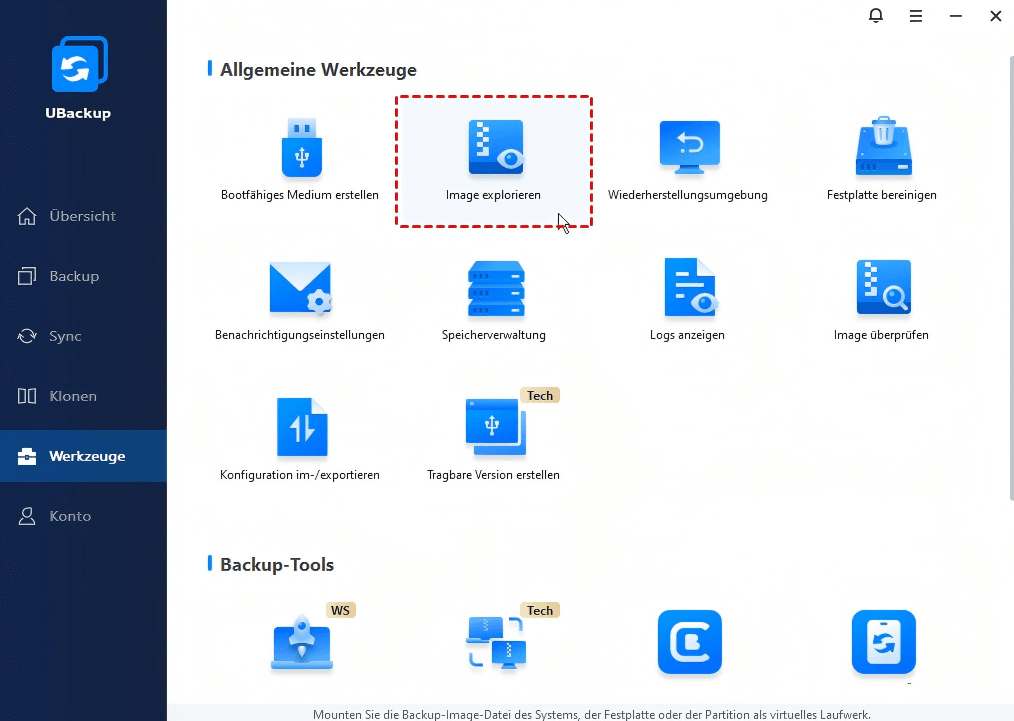 Schritt 1. Wählen Sie anschließend Werkzeuge > Image explorieren.
