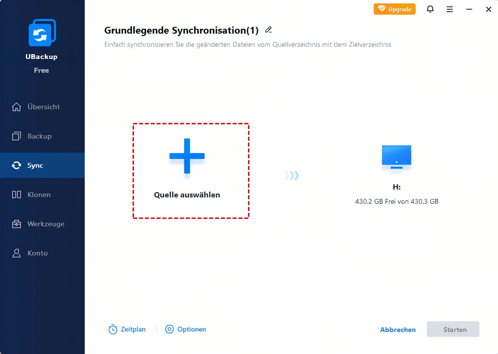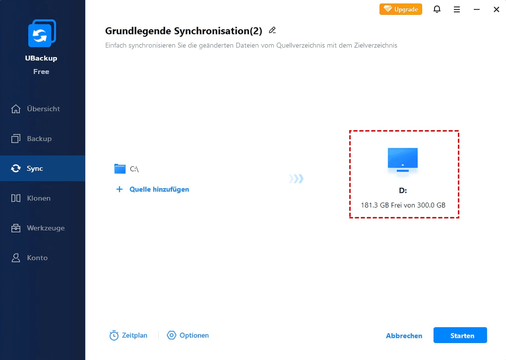 Nehmen wir an, Sie möchten lokale Ordner auf eine externe Festplatte spiegeln. Folgen Sie den nachstehenden Anweisungen: