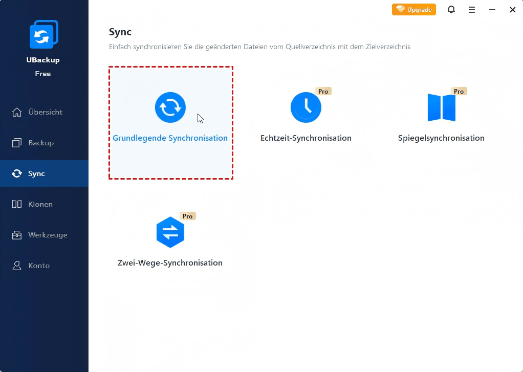 Wenn Sie auf höhere Editionen wie UBackup Home upgraden, können Sie die anderen drei Synchronisierungsmodi nutzen: