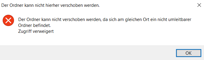 Benutzerfall: Ordner kann nicht verschoben werden, da sich am gleichen Ort ein nicht umleitbarer Ordner befindet
