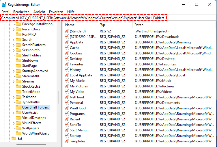 HKEY_CURRENT_USER \ Software \ Microsoft \ Windows \ CurrentVersion \ Explorer \ User Shell Folders