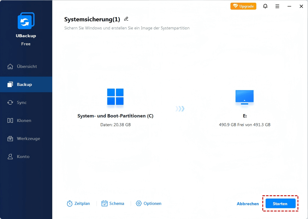 Schritt 3. Bestätigen Sie alle Ihre Operationen und klicken Sie auf Starten, um das System-Backup durchzuführen.