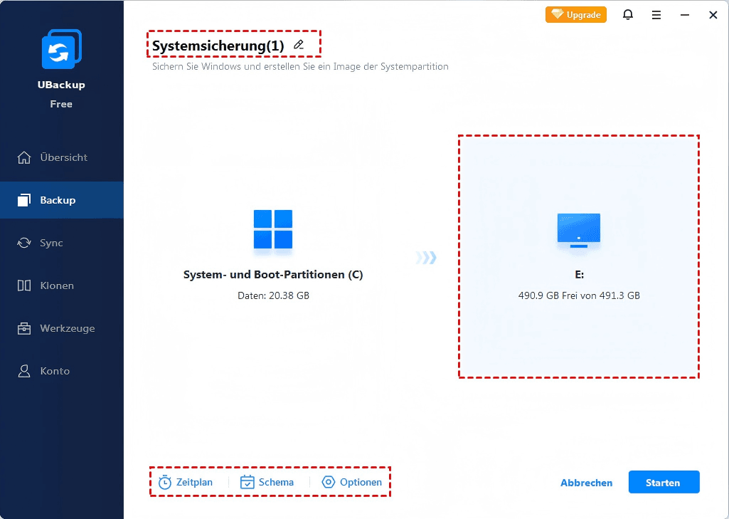 Schritt 1. Öffnen Sie die Freeware und klicken Sie auf Backup > Systemsicherung.