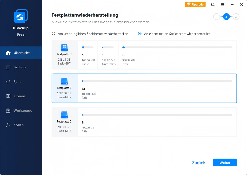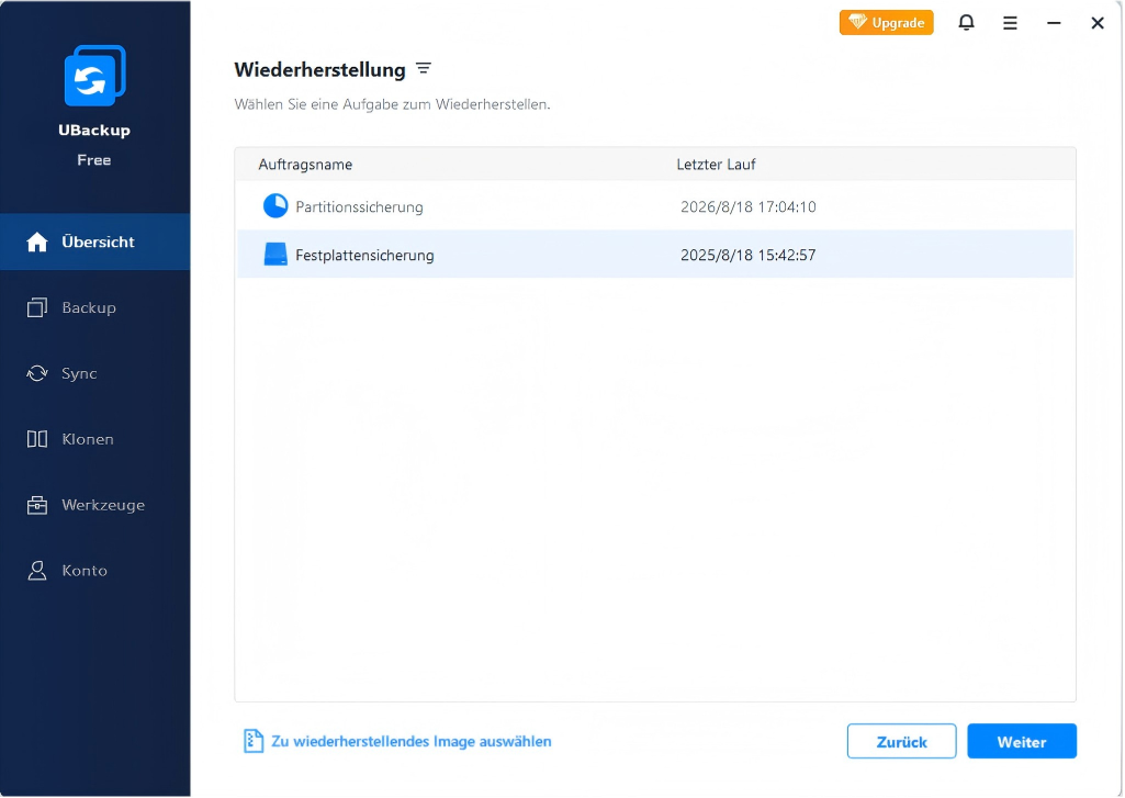 1. Wählen Sie auf der Hauptseite von Backupper die Registerkarte Übersicht und dann Wiederherstellen.