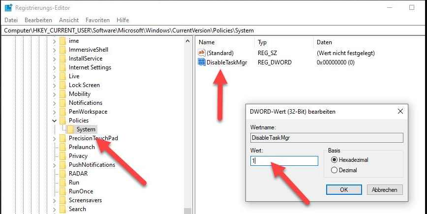 Wenn unter Windows 10 der Fehler Task-Manager wurde deaktiviert auftritt, können Sie den Task-Manager im Registrierungs-Editor aktivieren.