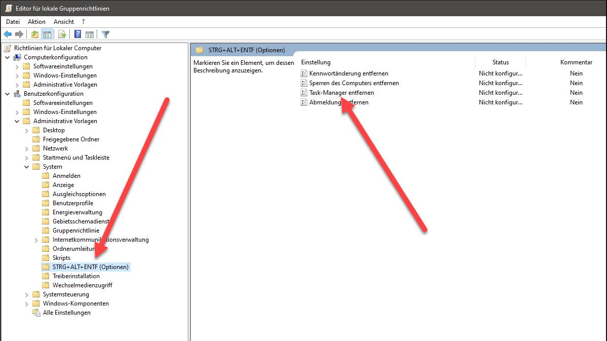 1. Task-Manager im Gruppenrichtlinien-Editor aktivieren (Windows Pro)