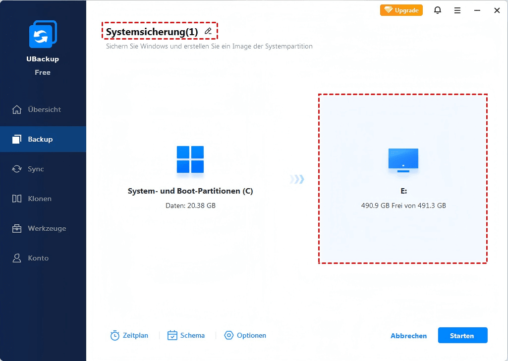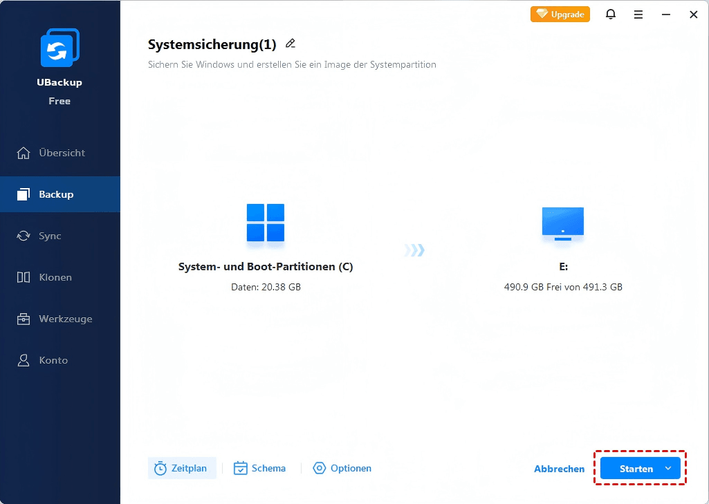 3. Klicken Sie auf Starten, um die Systemsicherung auf Ihrem Computer zu beginnen.