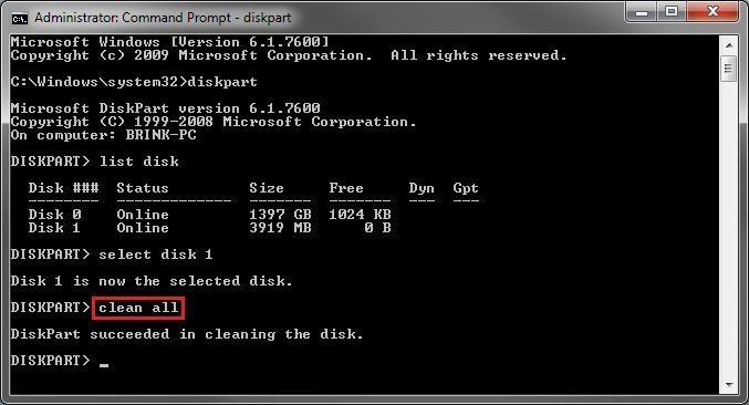 Methode 2. USB-Stick sicher löschen mit DiskPart