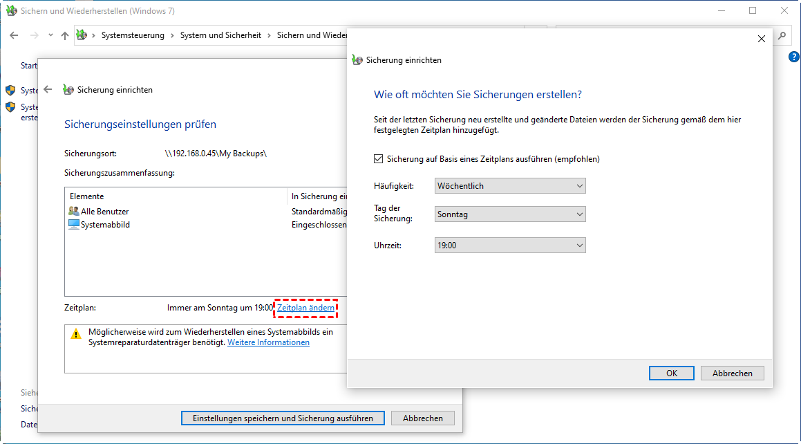 Normalerweise kann das Windows-Sicherungsprogramm eine regelmäßige Sicherung durchführen.