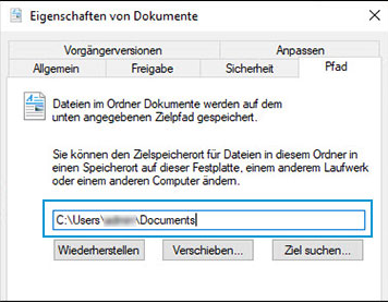 Ersetzen Sie zum Beispiel C:\Benutzer\Nina\Dokumente durch D:\Benutzer\Nina\Dokumente.