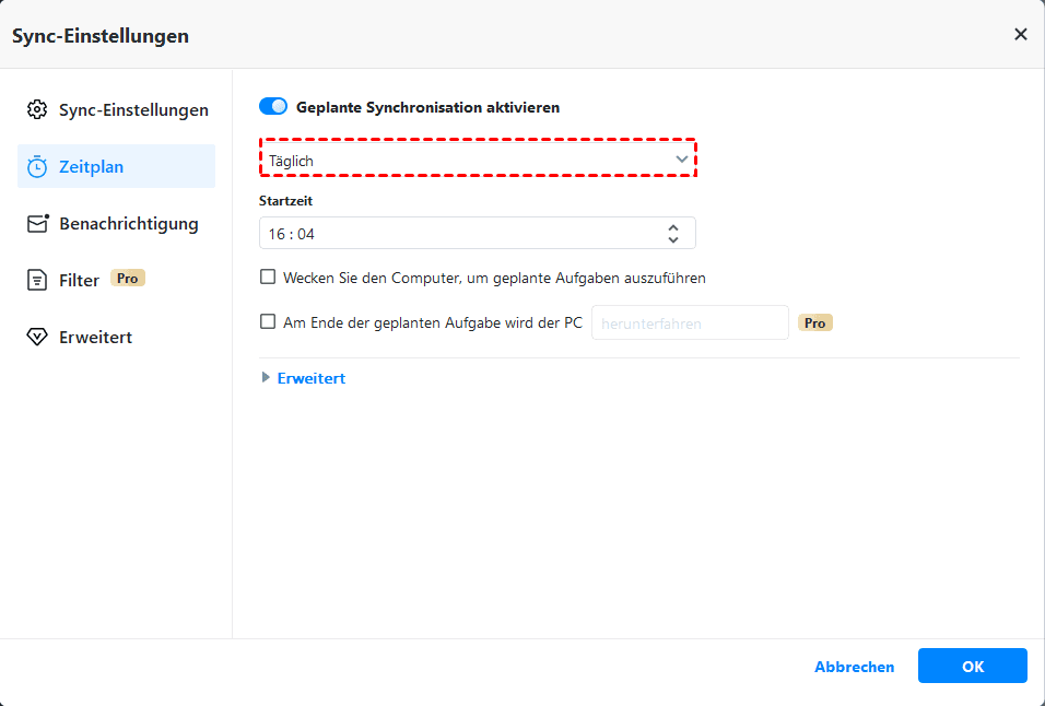Wenn Sie geänderte Dateien aus dem Quellverzeichnis in Echtzeit mit dem Zielverzeichnis synchronisieren möchten, probieren Sie bitte die Funktion Echtzeit-Synchronisation in den erweiterten Editionen aus.