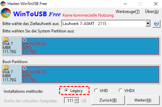 Methode 2. Windows 10 Live USB-Stick mit WinToUSB erstellen