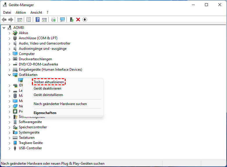 Schritt 3. Klicken Sie mit der rechten Maustaste auf Ihr Laufwerk und wählen Sie Treiber aktualisieren.