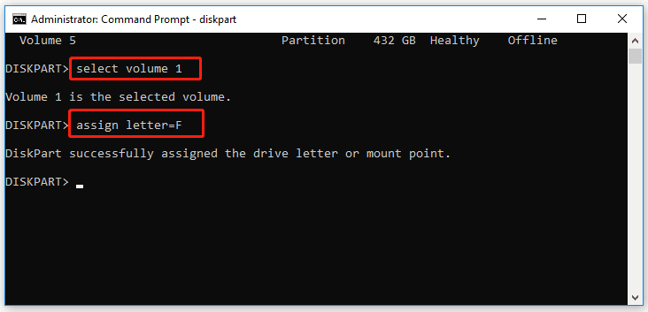 - select volume * (Ersetzen Sie * durch die Nummer Ihres Datenträgers, dem Sie einen Buchstaben zuweisen möchten)