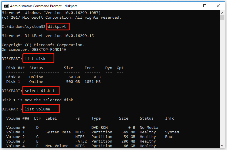 - select disk * (Ersetzen Sie * durch die Festplatte, die Sie reparieren möchten)