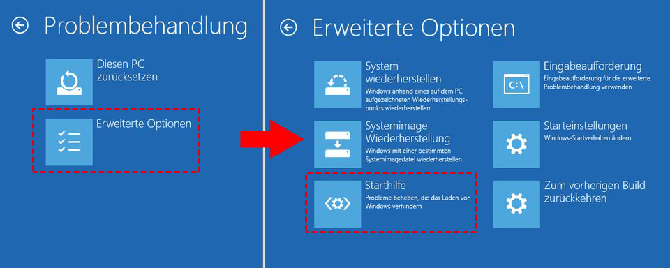 2. Wählen Sie Problembehandlung > Erweiterte Optionen > Starthilfe.