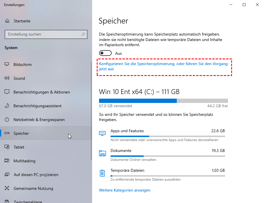 Eine weitere einfache Methode zur Reinigung des WinSxS-Verzeichnisses ist die Verwendung von Speichereinstellungen in Windows. Befolgen Sie diese Schritte: