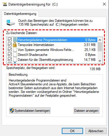 Schritt 6. Wenn Sie mehr Speicherplatz freigeben möchten, klicken Sie auf Systemdateien bereinigen.