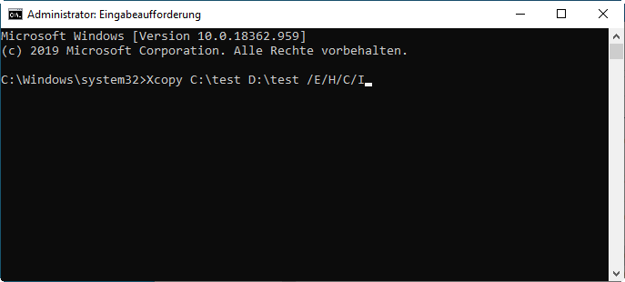 Ordnern und Inhalten mit dem Xcopy-Befehl in Windows 10 kopieren