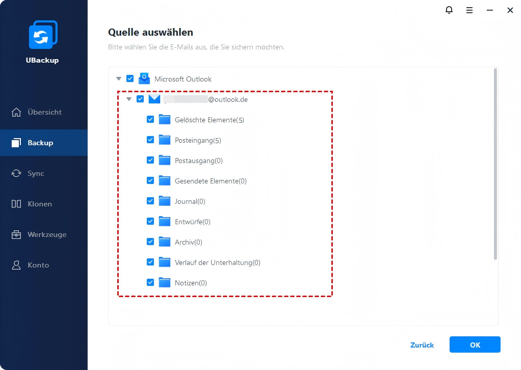 Frage 3: Kann ich meine E-Mails mithilfe von UBackup sichern?