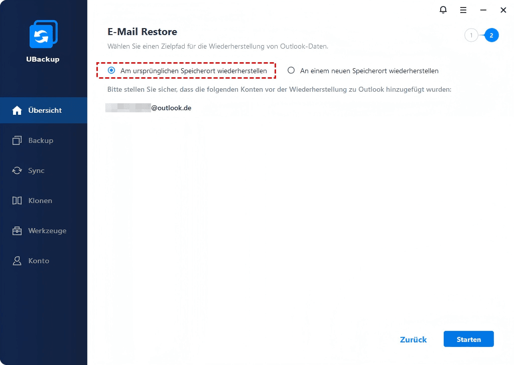 Schritt 2: Stellen Sie das Outlook Backup-Image auf dem neuen PC wieder her: