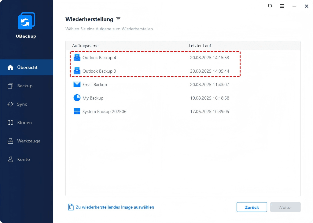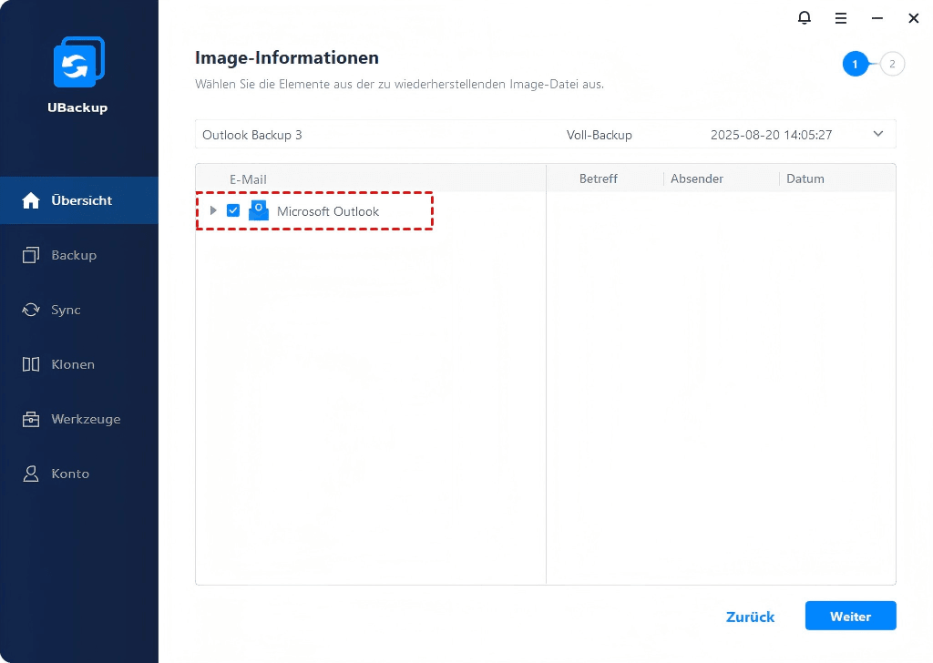 Schritt 1: Sichern Sie Outlook-Ordner mit UBackup: